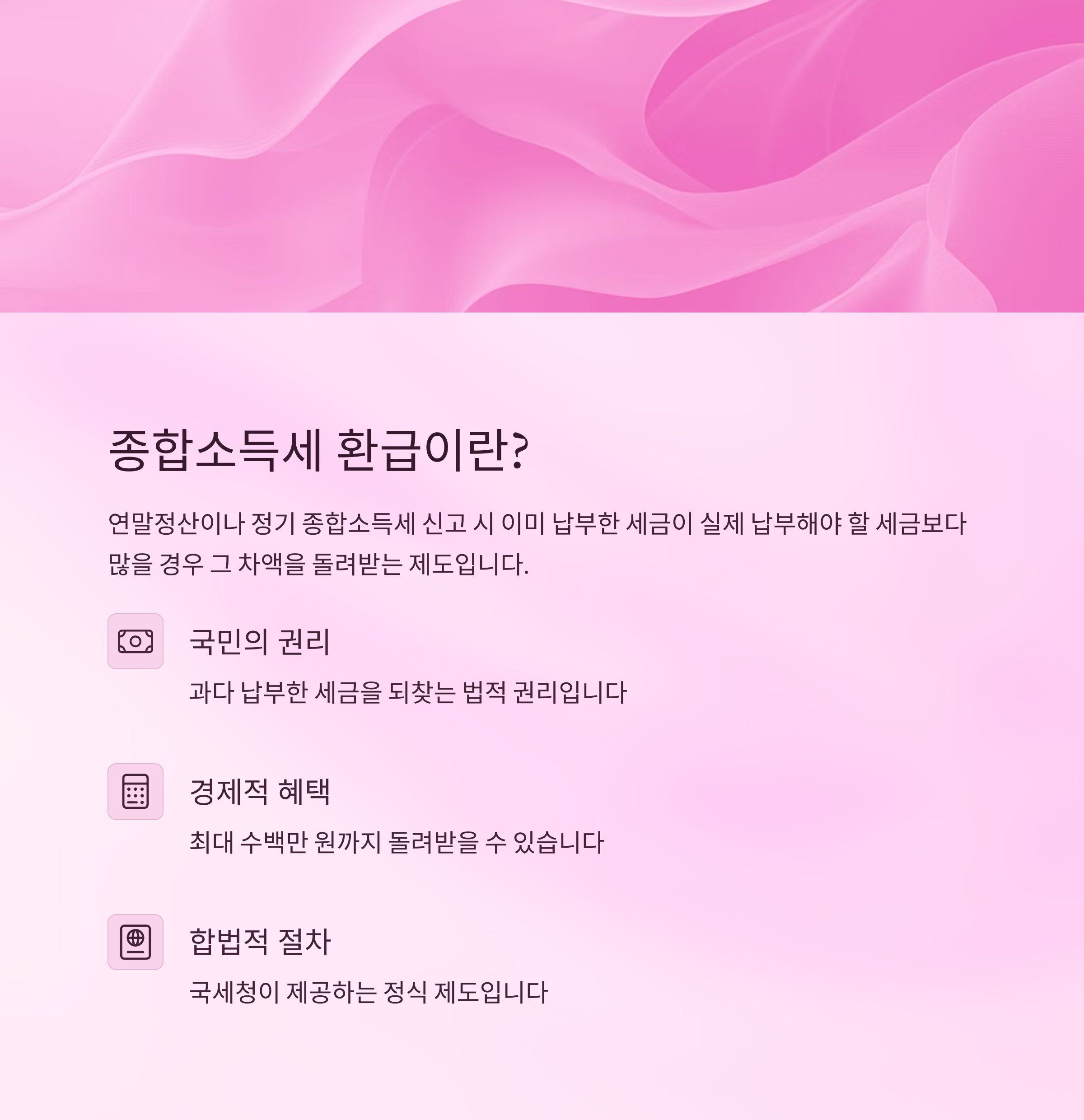 종합소득세 환급은 단순한 세금 정산을 넘어, 국민의 권리를 되찾는 과정입니다. 많은 분들이 어려워 보인다는 이유로 환급 신청을 미루거나 놓치는 경우가 많습니다. 하지만 정확히 알고 준비하면 합법적으로 수백만 원의 환급금을 받을 수 있습니다. 이 글에서는 종합소득세 환급의 기본 개념부터 신청 방법, 환급금 계산 방식, 그리고 환급을 극대화할 수 있는 실전 팁까지 상세하게 안내드리겠습니다.