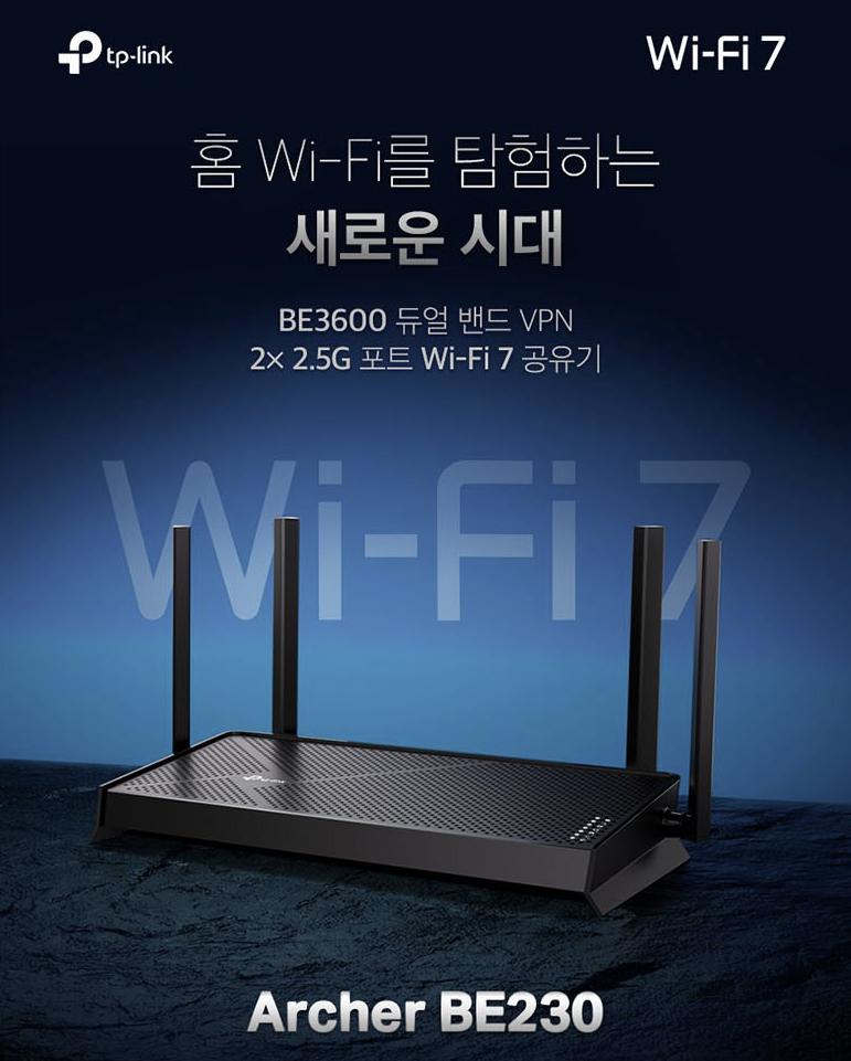 TP-Link, BE3600, BE230, Wi-Fi7, 듀얼밴드공유기, 2.5G포트, EasyMesh, 가성비공유기, 홈네트워크, 스트리밍